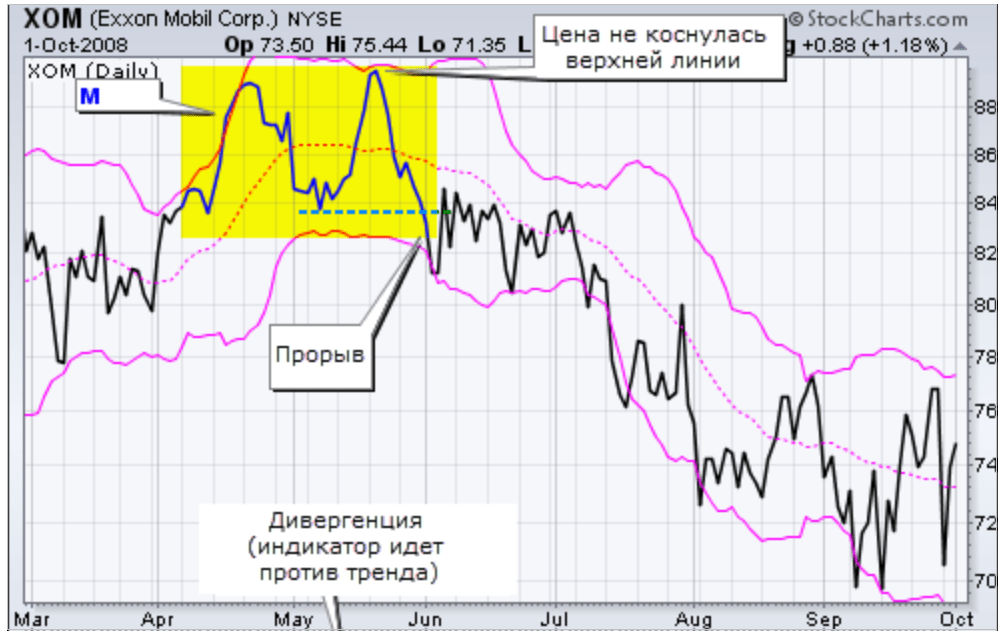 В классическом техническом анализе такие модели носят названия М и W. Опытные трейдеры советуют не использовать такую стратегию Bollinger bands на краткосрочных графиках, так как в этом случае возможны еще некоторые колебания цен с учетом инерции.
