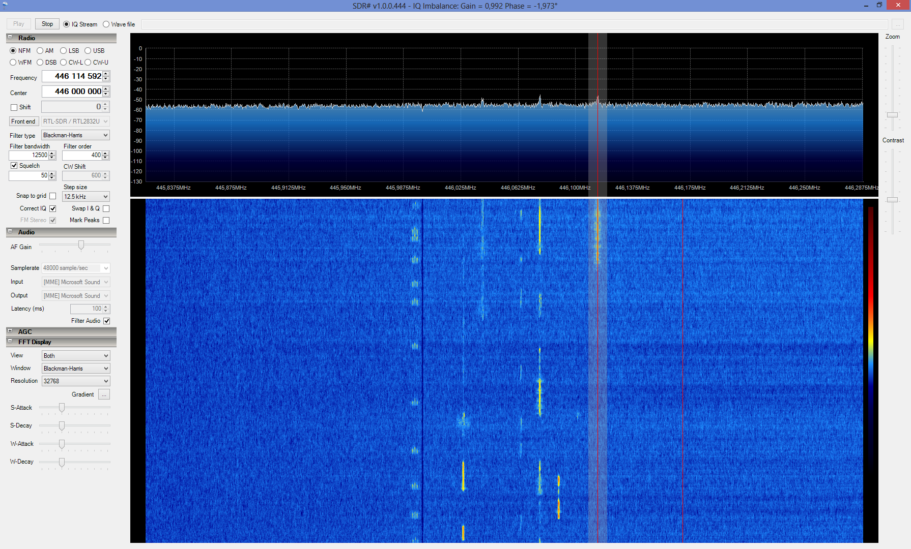 Прием переговоров по рации на частоте 446 МГц в SDRSharp