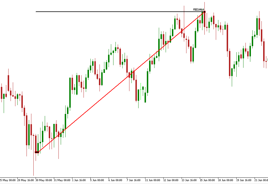 Если тенденция восходящая, определяют минимум. И наоборот, для нисходящей находят максимум. Сетка натягивается от экстремума, вниз или вверх соответственно.