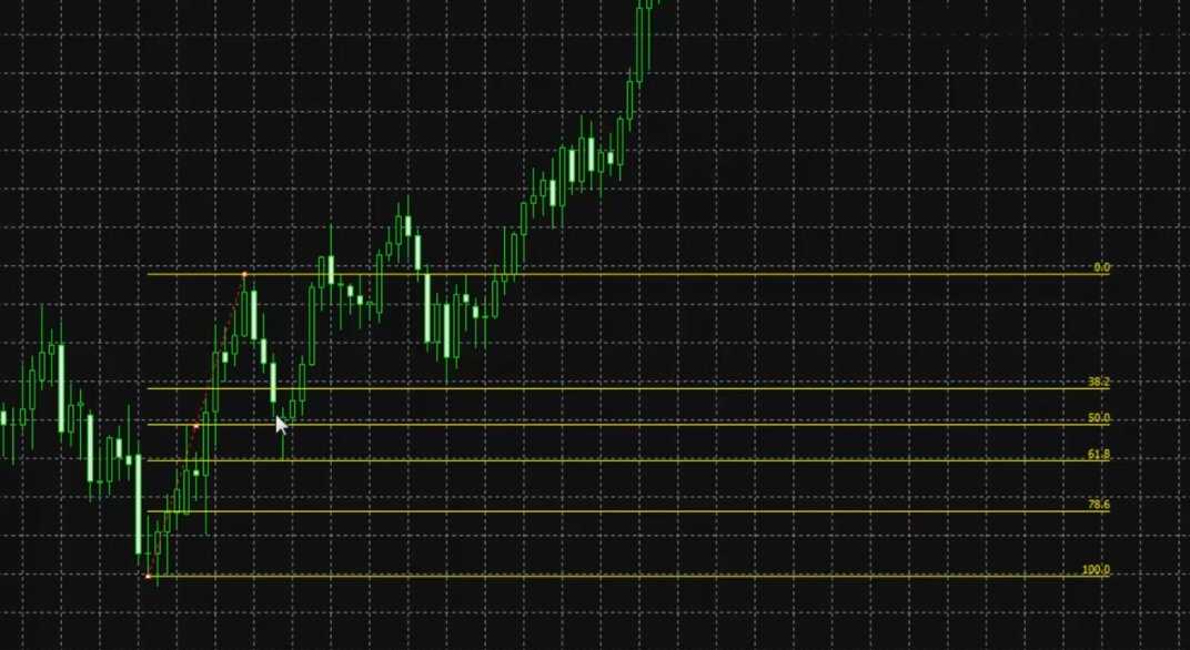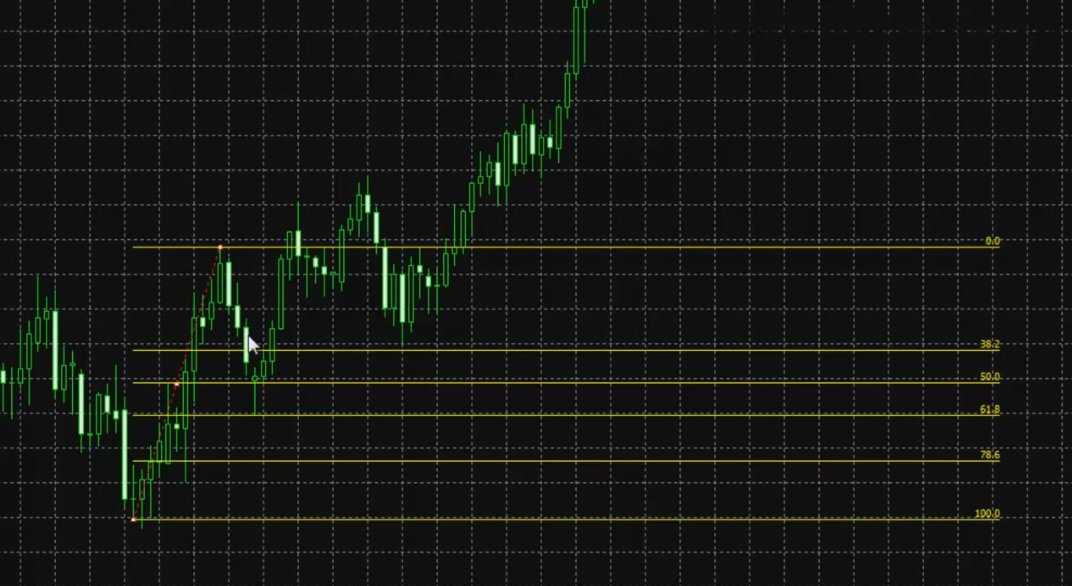 Когда трейдер разобрался с определением трендового движения, можно натянуть сетку Фибо. Это позволит выделить зоны коррекции, на которых открывают сделки.