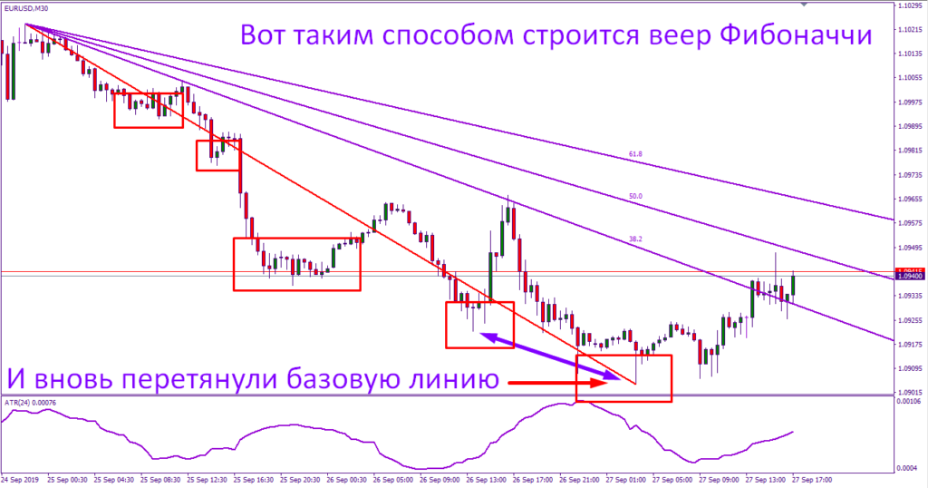 построение, то анализ по вееру фибо будет ошибочно искажён. И вот почему: