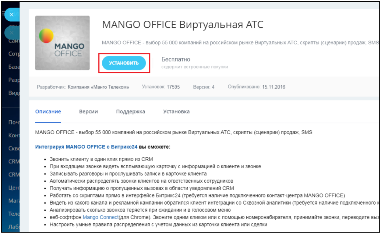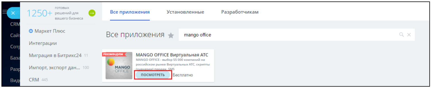 - В поиске наберите «Mango Office» или нужную систему аналитики. Нажмите на появившуюся иконку.