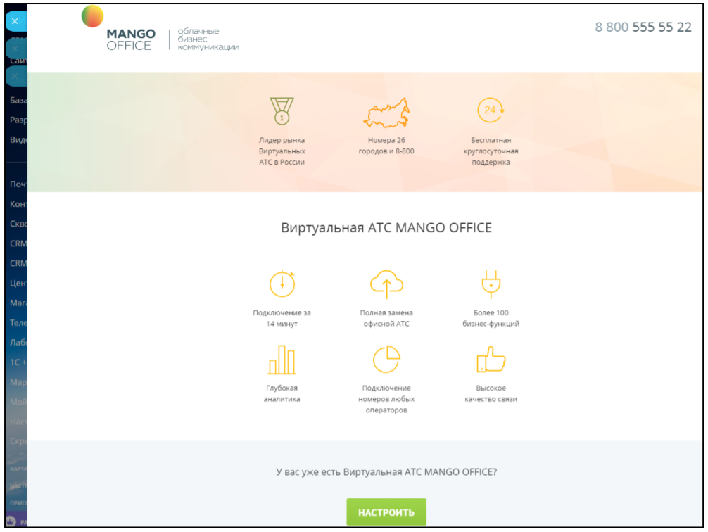 Многофункциональные CRM вроде Битрикс 24 (Bitrix24), AmoCRM позволяют сделать интеграцию с call tracking прямо в интерфейсе системы. Рассмотрим на примере, как настроить коллтрекинг в Битрикс24. Сервис коллтрекинга Mango Office возьмем в качестве примера.