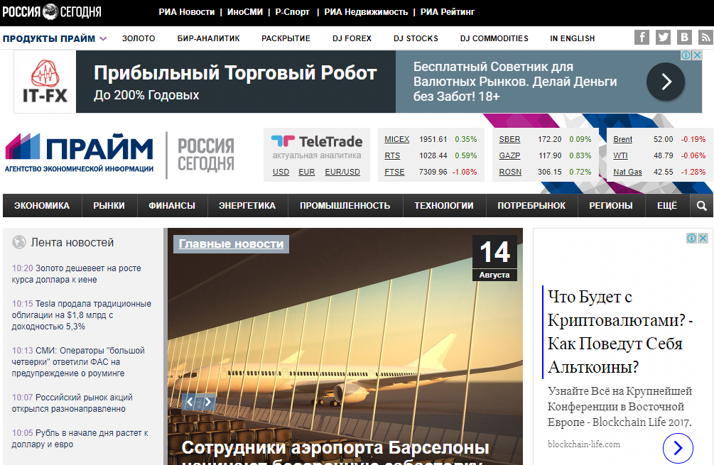 Именно здесь в первую очередь появляются новости, которые публикуются на таких мировых информационных порталах, как Блумберг и Dow Jones. Таким образом, Прайм является своего рода первоисточником в мире финансов и мировой экономики.