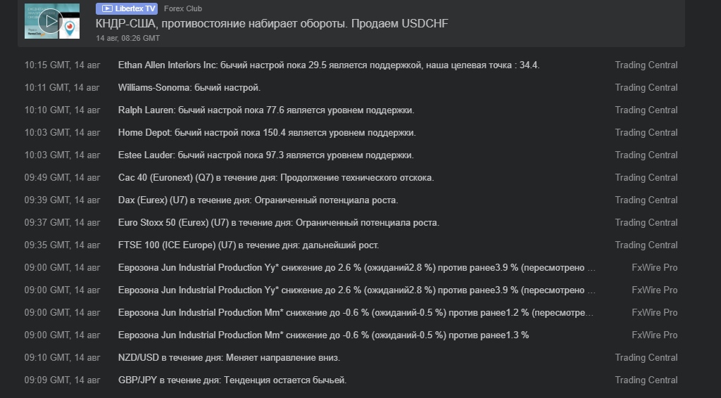 Практически каждые 10-15 минут здесь публикуются обзоры рынков, которые создаются ведущими аналитиками и экспертами лучших брокеров и банков. Таким образом, вы будете в курсе абсолютно всех мнений и рекомендаций к торговле.