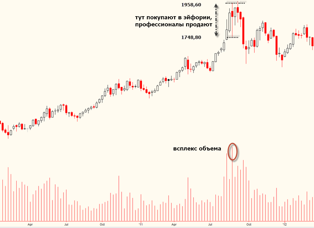 Крупные игроки раскрывают свои намерения на графиках, отмечая свое присутствие в виде большого объема, который с точностью показывает, где корпоративные игроки входят или выходят с рынка и где происходят и . Без объема можно только догадываться, что будет делать рынок. Независимо от того, торгуете ли вы акциями, фьючерсами или являетесь Форекс-трейдером