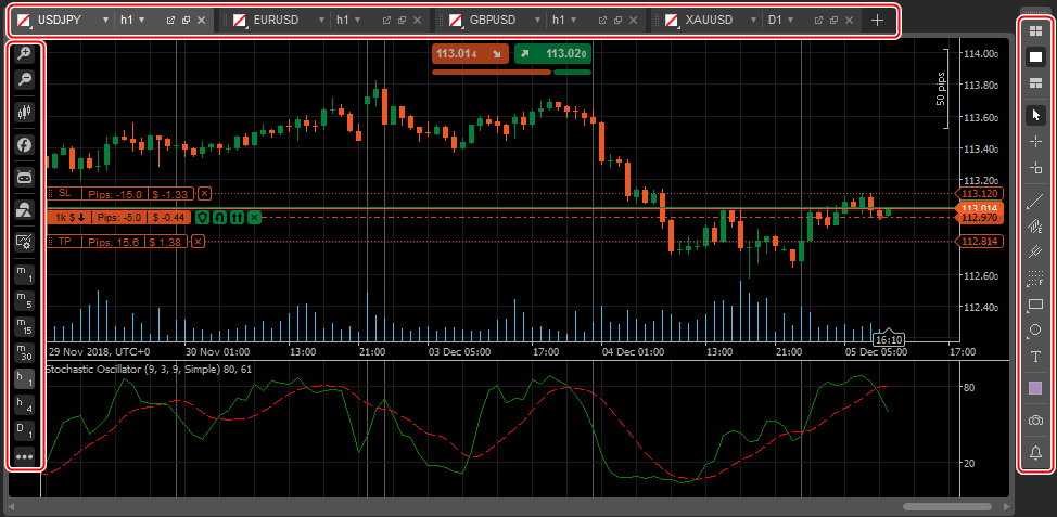 cTrader предлагает хорошо продуманную область построения графиков, которая на самом деле очень проста в использовании. Графики можно отсоединять от платформы в отдельное окно, его можно уменьшать или увеличивать, менять таймфреймы, вид графика, добавлять индикаторы и т.д. Этим платформа cTrader отличается от любой другой платформы интернет-трейдинга.