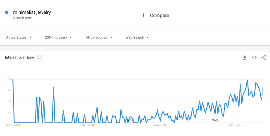 Даже Google Trends показывает, что потребители чаще искали этот вид ювелирных изделий.