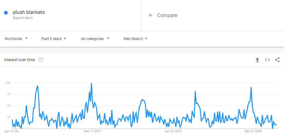 Плюшевые одеяла – отличный товар для продажи в зимний период, как видно из приведенного выше тренда.