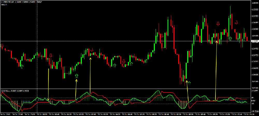 Arrow – существует несколько версий это индикатора, но все это модификации, отличие которых, в принципе, заключается в отображении стрелок. Индикатор основан на работе скользящих средних, в момент пересечения которых появляются стрелки. Тут все просто – стрелка вверх сигнализирует на покупку, а вниз на продажу.