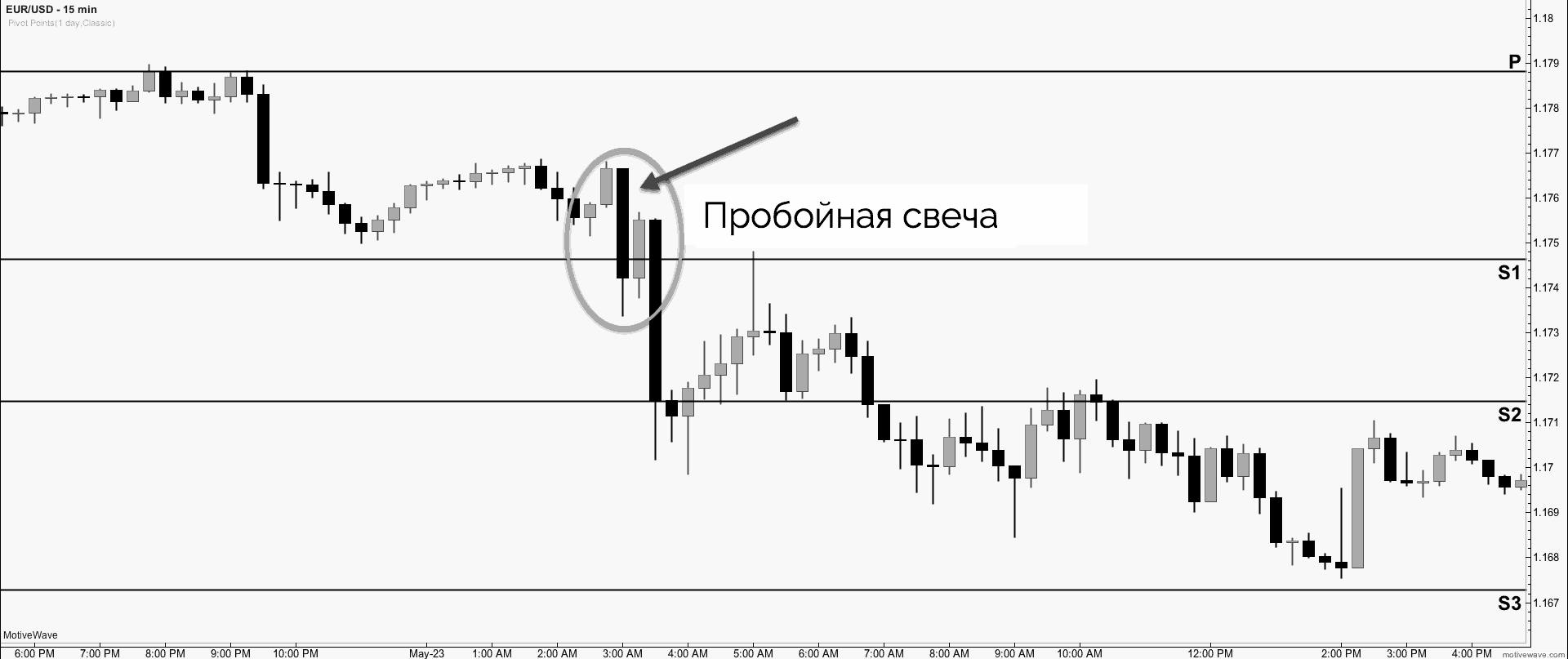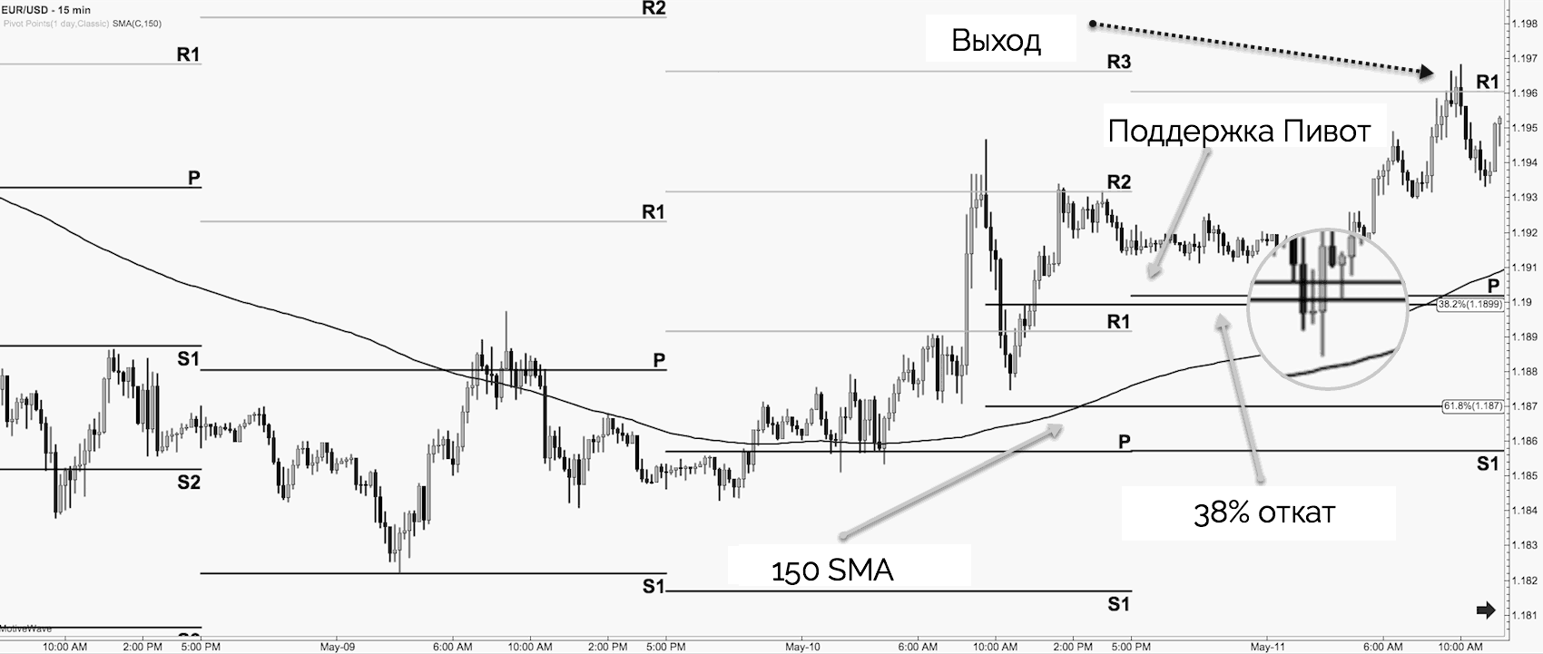 Давайте рассмотрим несколько примеров. Первый пример — торговля на пробой с использованием точек разворота: