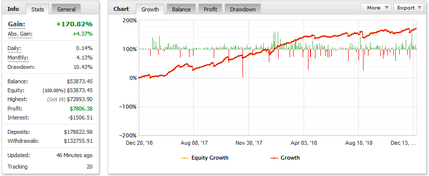 Консервативная торговля. Торговля ведётся уже два года. На сегодняшний день заработано почти 171% прибыли.