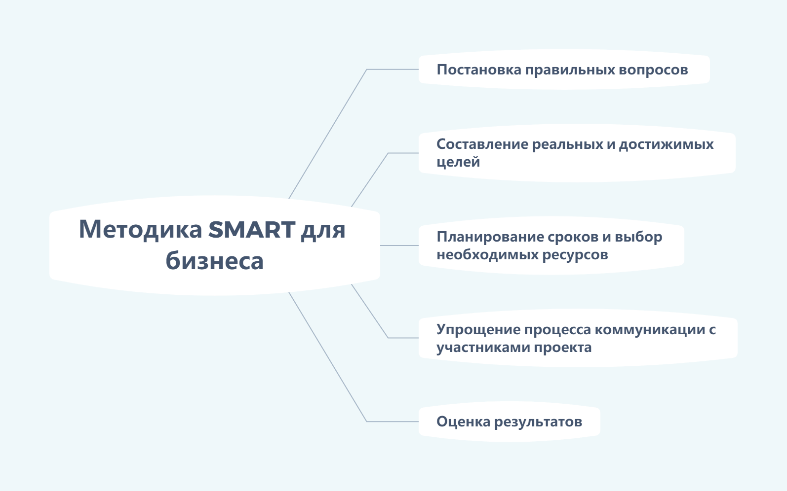 Таким образом, постановка конкретных, измеримых, достижимых, актуальных и ограниченных по времени (SMART) целей является хорошим способом для планирования шагов, для достижения долгосрочных результатов проекта. По сути постановка SMART цели является связующим звеном от идей к действию. Постановка целей по принципу SMART поддерживает продвижение проекта, помогает поддерживать сроки и отчетность, позволяет напоминать вам о том, что запланировано к выполнению.