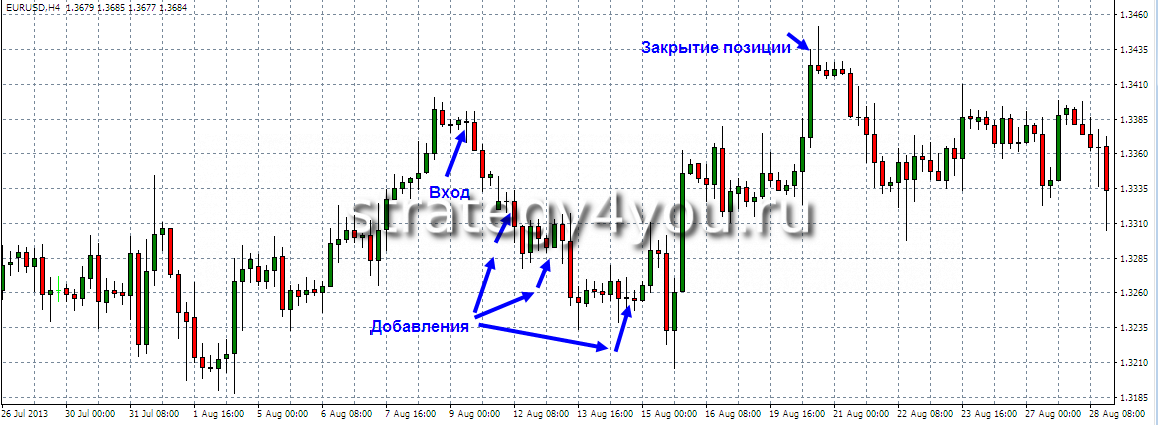 В конечном итоге, это выглядит как доливка удачной цепочки ордеров. Выставляет тейк-профит и стоп-лосс, используя значение ATR. Максимально заточен под работу с большими депозитами и ПАММ-счетами. Подразумевает настройки под требования каждого отдельного пользователя.