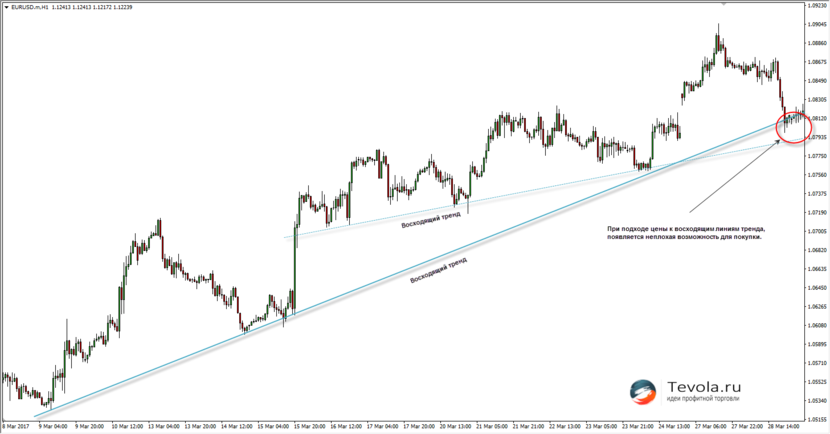В этой же статье будет идти речь о торговой стратегии, основанной на линии тренда. Считаем, что линия тренда уже определена и построена.
