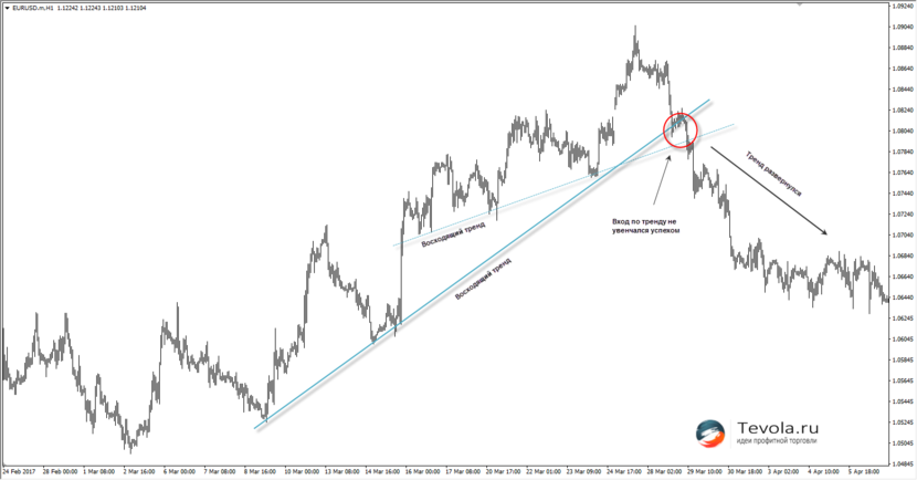 Ложный контр-тренд — когда трейдер входит в сделку против рынка при том, что значимые признаки разворота отсутствуют.