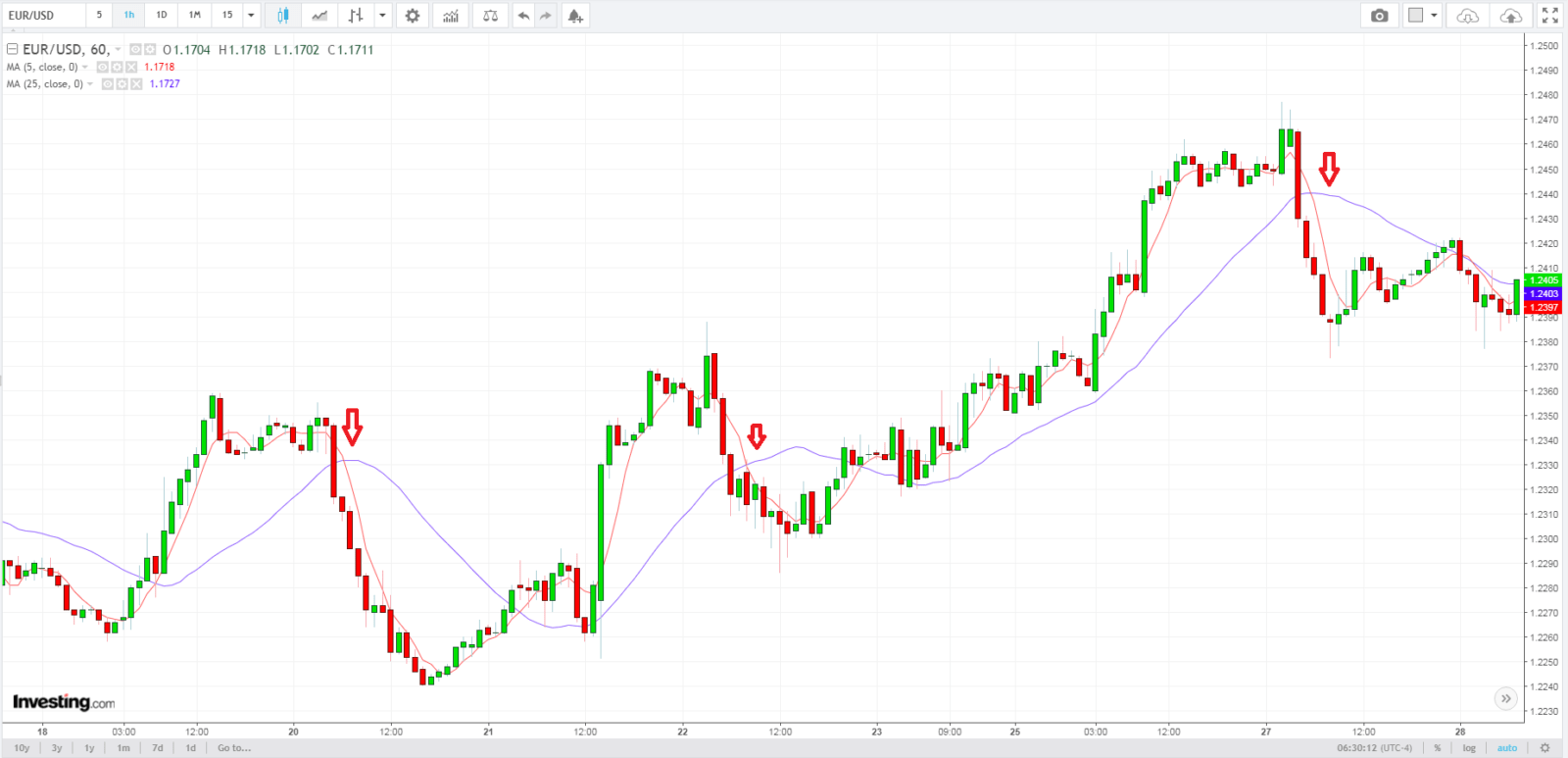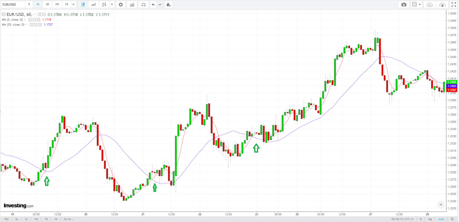 Используемые индикаторы: MA (5), MA (25).