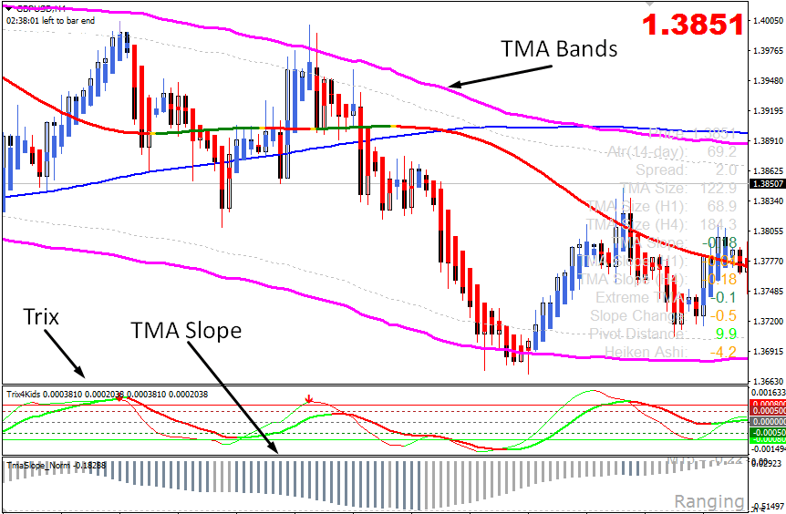 Всего в стратегии Extreme TMA System мы смотрим на 3 основных индикатора – Slope, Trix и Bands