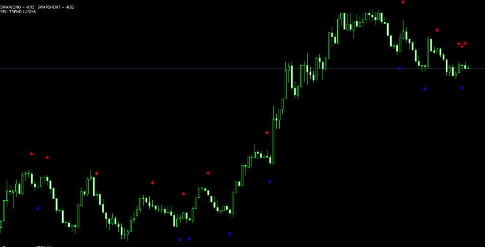 Работать по этому индикатору Arrow без перерисовки очень просто. Зеленые стрелки вверх обозначают торговлю на повышение, ну а красные вниз — на понижение.