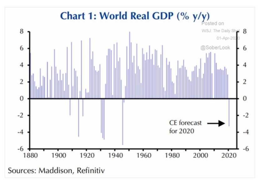 Согласно прогнозу Maddison (начало апреля 2020 г), 2020 год может стать первым годом падения мирового ВВП после Второй мировой войны.