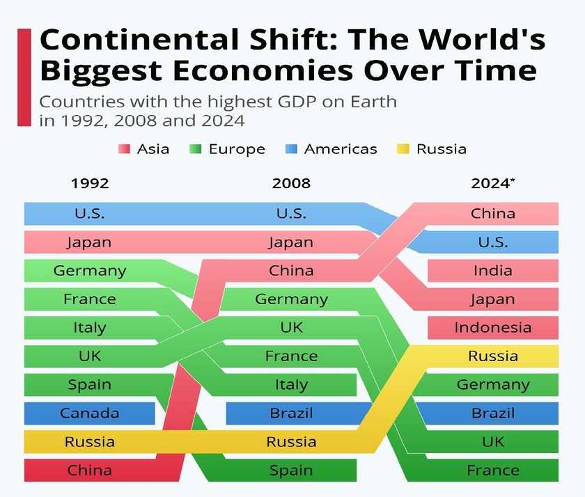 Однако всё это в первую очередь благодаря Китаю и Индии. Китай уже может тягаться не только с другими странами, но и с объединениями стран.