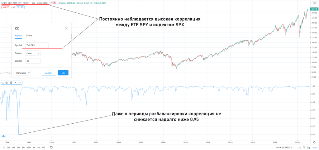 Ключевая особенность ETF фондов – возможность портфельного инвестирования за счет покупки всего 1 ценной бумаги. Провайдеры биржевых фондов составляют портфель из акций различных компаний, а корзины индексов используются для облегчения этой задачи. Например, фонд с тикером SPY копирует корзину американского S&P 500 с точностью, превышающей 95%. Покупая акции SPY, инвестор вкладывает деньги в 500 крупнейших компаний США.