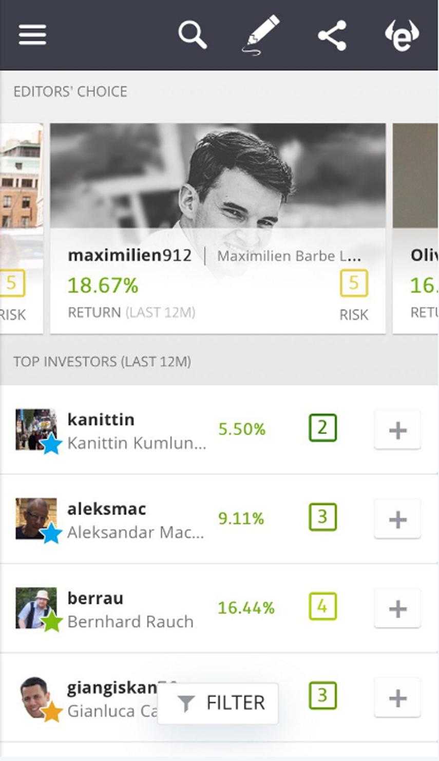 Платформа для социального трейдинга. Представлена в виде веб-терминала, для доступа к которому достаточно браузера. Регистрация бесплатная. При использовании чужих сигналов комиссия управляющего включена в спред.