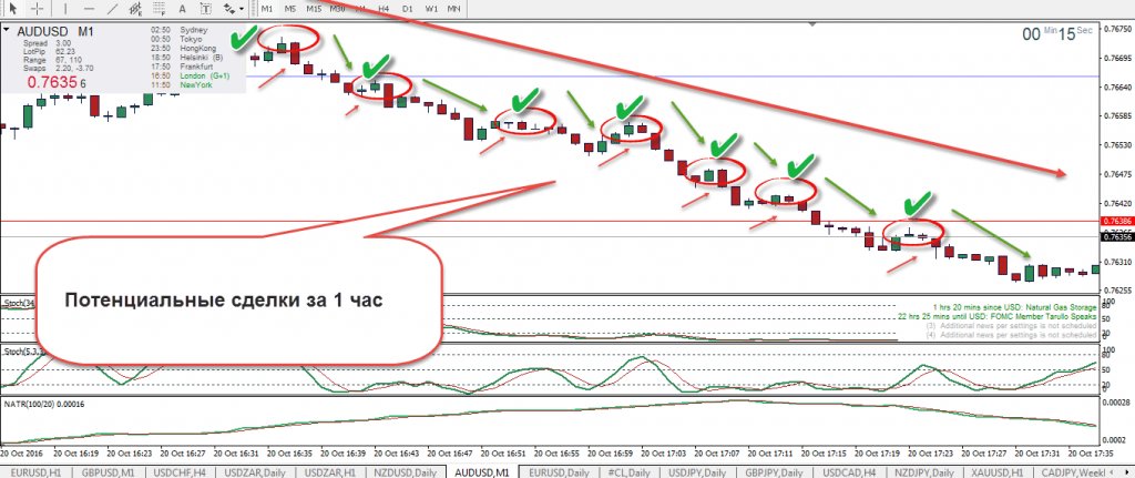 Главная особенность здесь состоит в том, что участник может находиться на рынке длительное время, извлекая прибыль даже с самых небольших колебаний стоимости. На протяжении дня можно заключать до нескольких десятков сделок, продолжительность которых составит не более пяти минут.