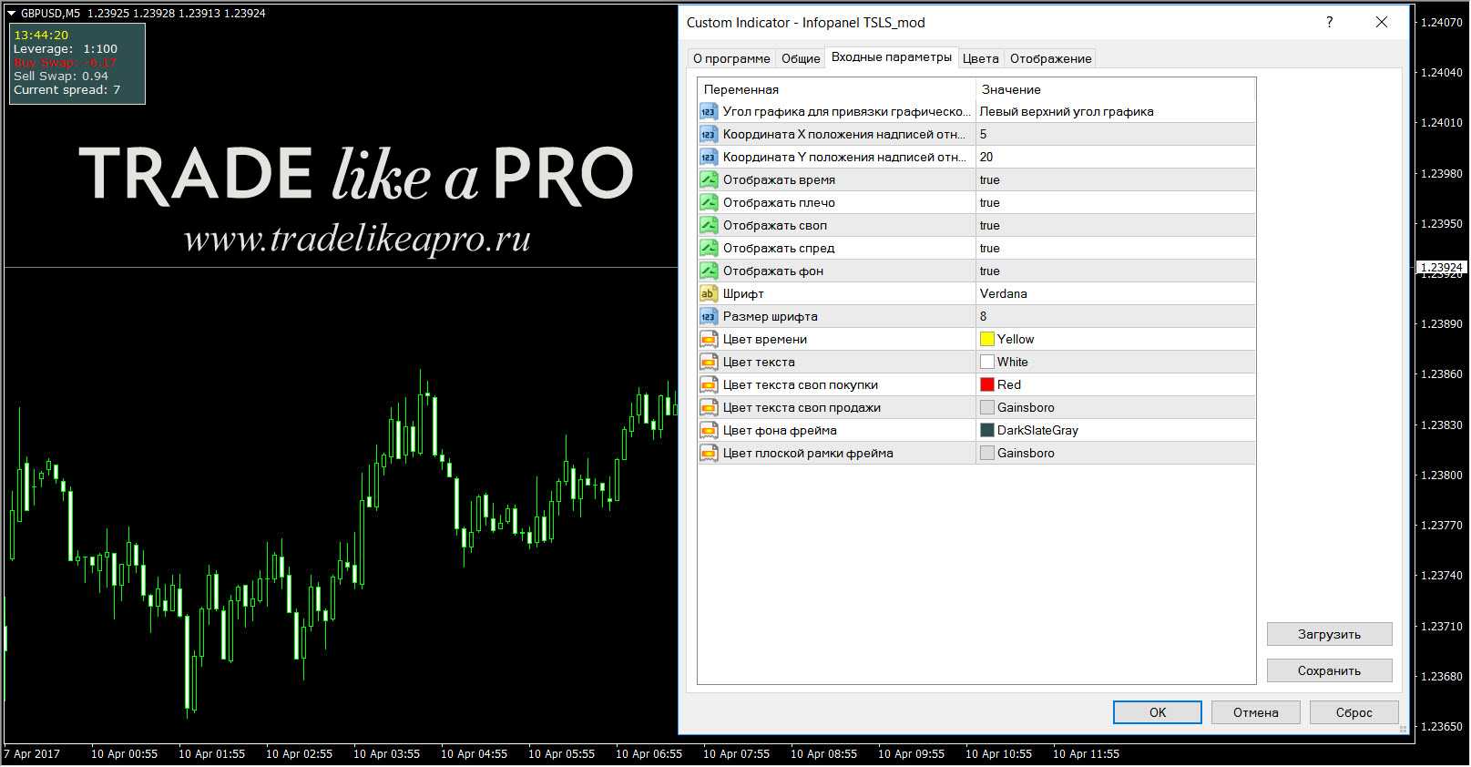 Infopanel TSLS_mod – весьма простая и незатейливая панелька – в одном окне у нас спред, своп, текущее время и информация о кредитном плече.