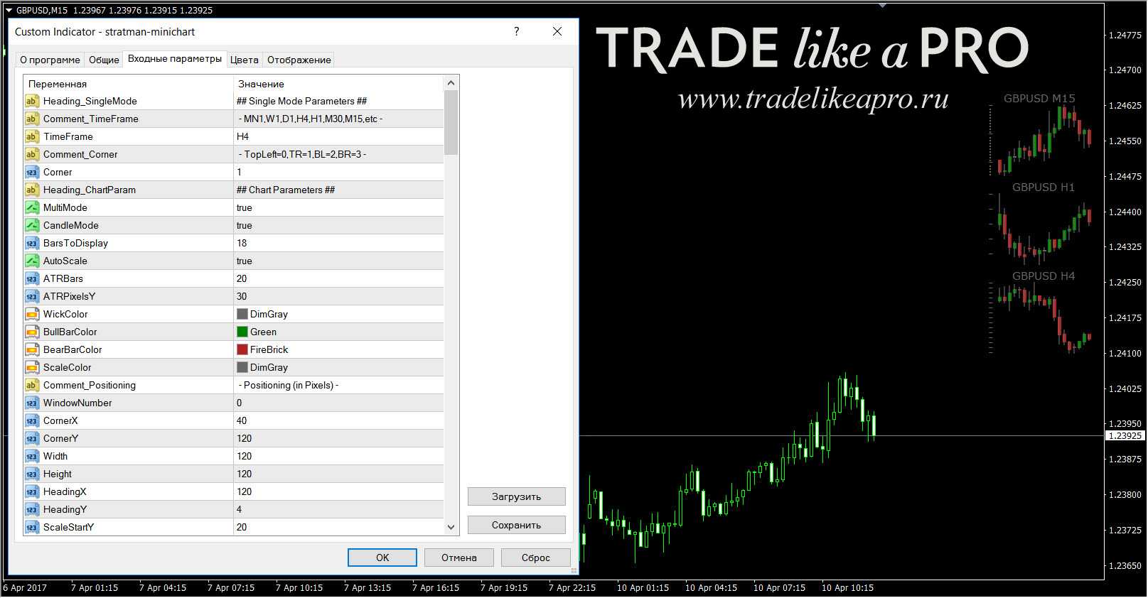 stratman-minichart – один из самых известных, подробно рассмотрен на нашем сайте. Могу лишь сказать – индикатор довольно популярен и существует немало его различных модификаций – но по функционалу и управлению они аналогичны и проблем с настройкой у вас не возникнет.