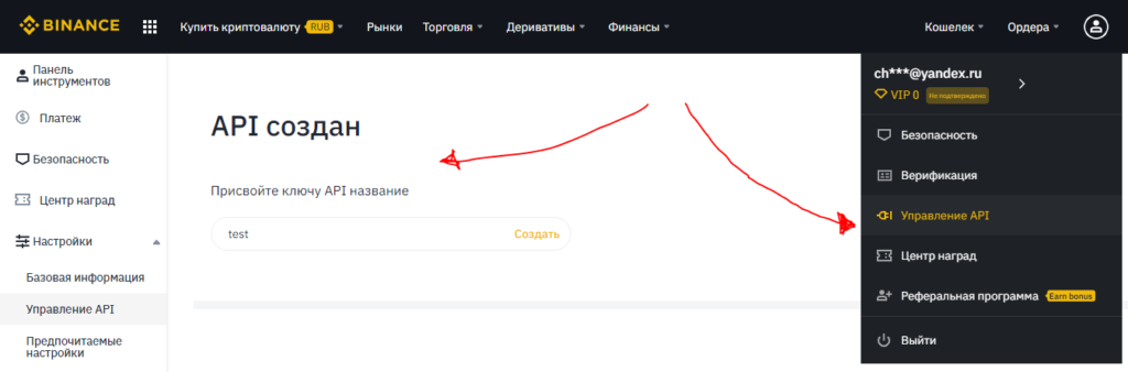 Для торговли на спотовом и фьючерсном рынках Binance создается 1 API, но регистрироваться приходится на разных страницах.