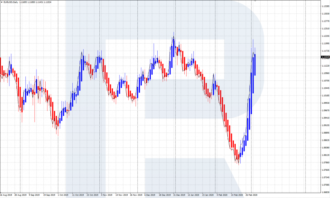 При использовании стратегии Heiken Ashi на график устанавливают специально подготовленный индикатор (я выложил этот индикатор на облако майл – скачайте его тут), который имеет следующие характеристики: