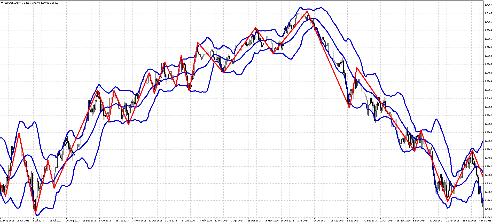 Индикатор zigzag оптимально сочетается с линиями Боллинджера: