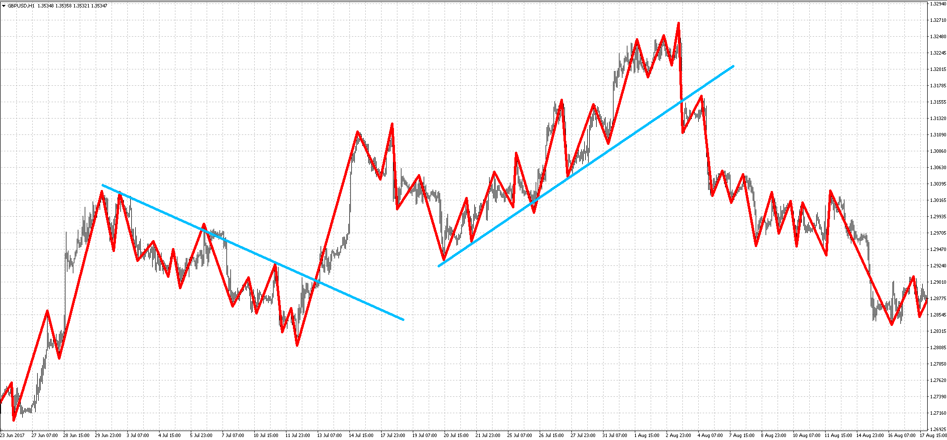 Индикатор ZigZag также упрощает и построение трендовых линий: