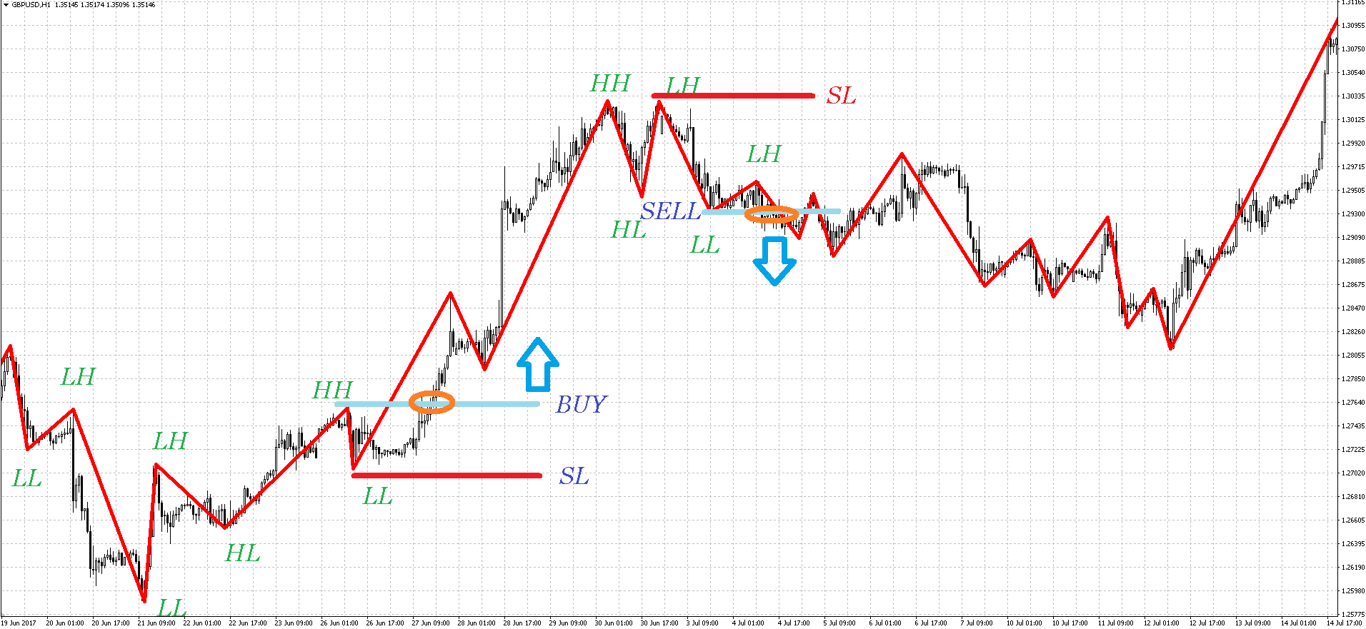 Следует начать описание с самой распространенной и простой в понимании трендовой системы, основанной на пробитии последнего максимума или минимума. В книгах по Форекс можно встретить множество вариаций данной системы, где линии чертятся вручную или подкрепляются фракталами и могут называться паттерном «1-2-3». С помощью Зигзага данная система будет работать также отлично, как и в аналогичных примерах.