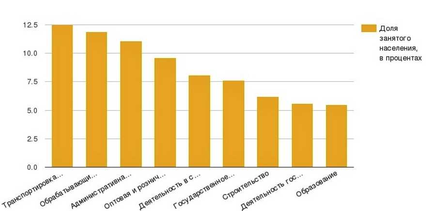 Экономически активное население распределено следующими типами занятий: занятый в экономике; присутствующие религиозных культов; военный персонал; безработный.