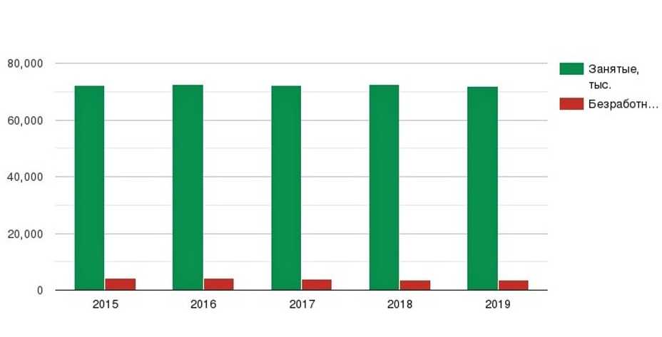 Количество занятых и безработных граждан по годам: