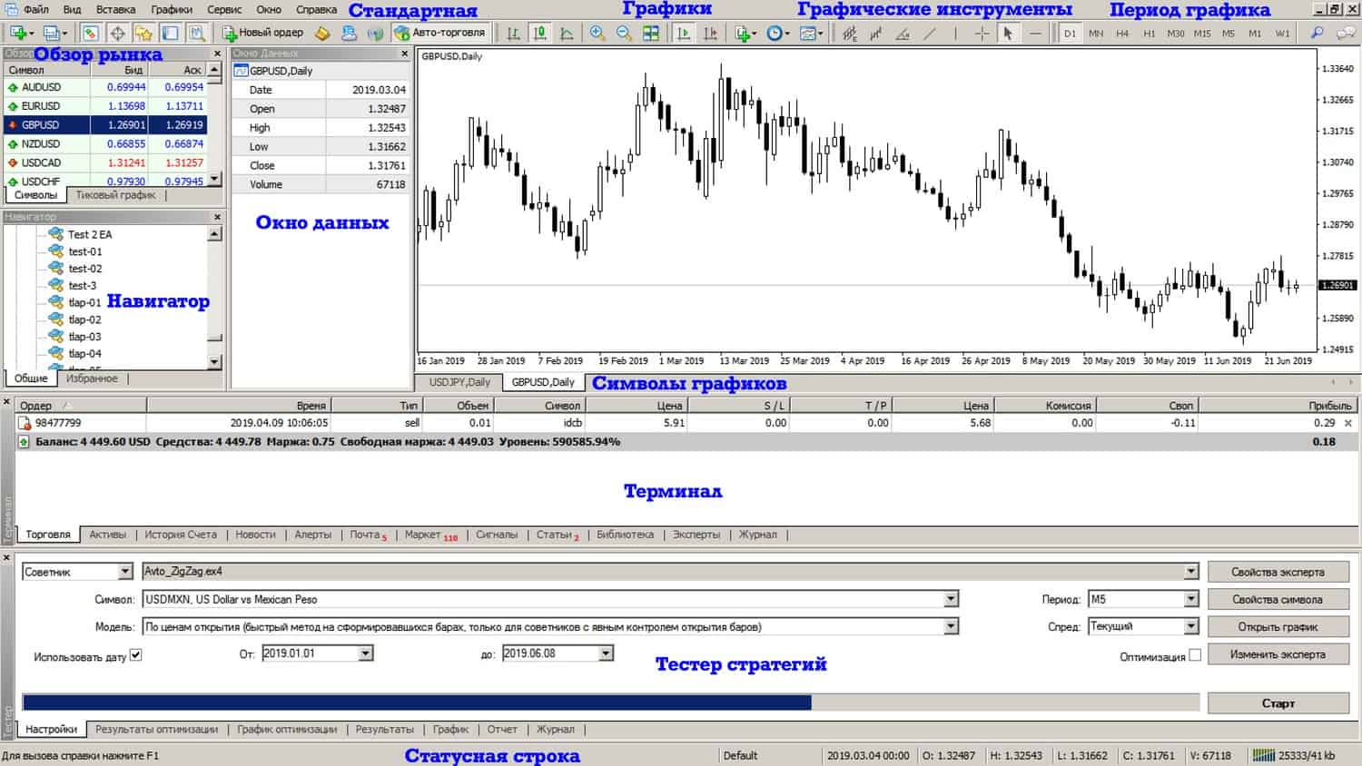 Для получения доступа клиентов к торговле на рынке Форекс, брокерские компании используют специальный программный комплекс. Трейдеру необходимо научиться торговать на Форекс с нуля чтобы стать уверенным пользователем терминала и свободно ориентироваться во всех его функциональных возможностях, проводить технический анализ, вести операционную деятельность. В распоряжении трейдера есть специальные сервисы: