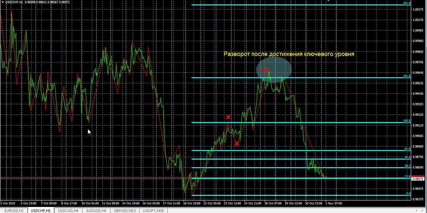 - Уровень 61,8 чаще всего выступает как дно коррекционного движения графика.