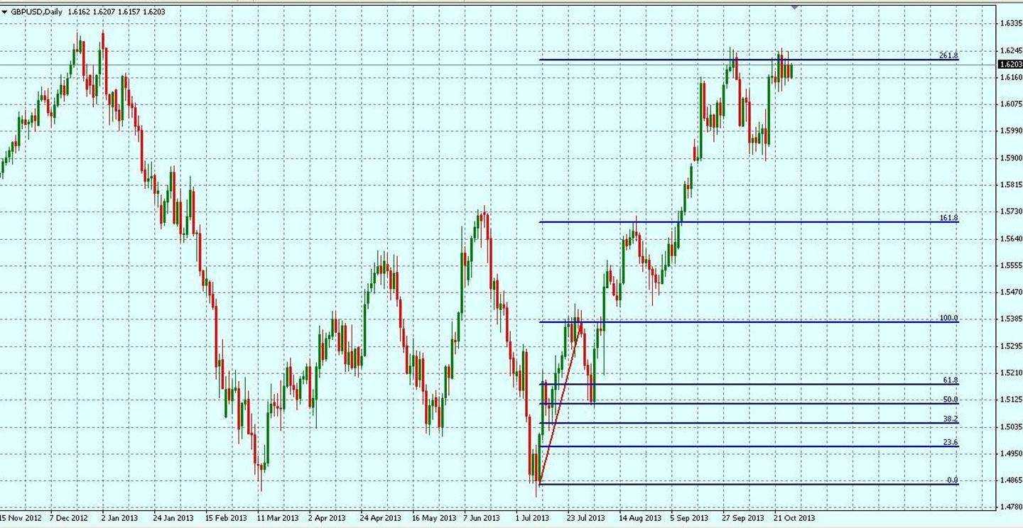 Например, пробой вверх, одного из основных уровней на восходящем тренде (161,8), с высокой степенью вероятности говорит о стремлении цены достичь следующей цели — 261,8.