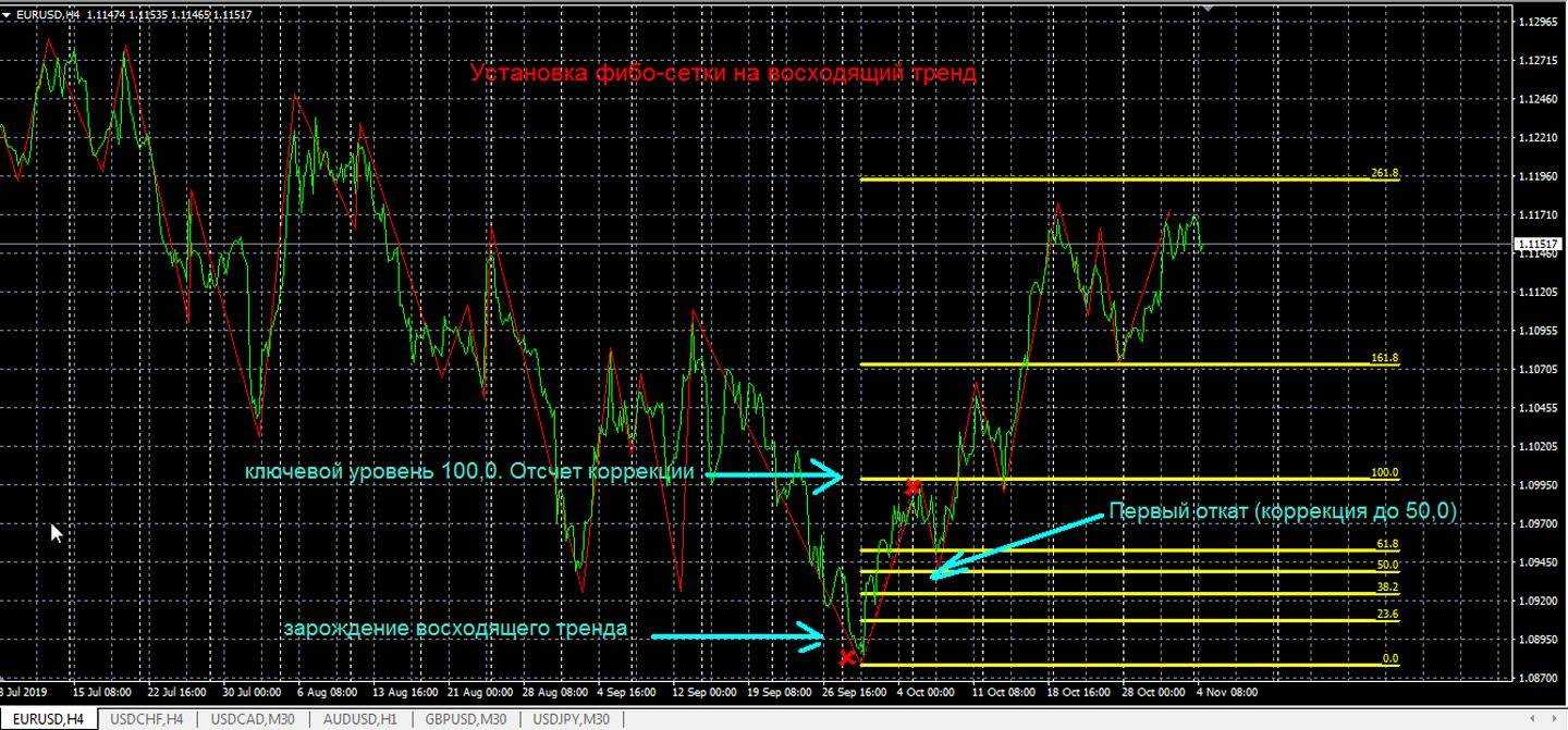 Фибо-сетка даст эффект только при правильной установке индикатора, которая предполагает: