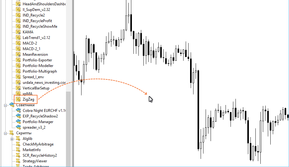 Стоит отметить, что новичку сперва будет сложно на глаз определять все точки хай-лоу, поэтому я рекомендую установить на график индикатор ZigZag (есть в любом терминале по умолчанию). Настройки по-умолчанию можно не изменять. Единственное, индикатор не всегда правильно определяет экстремумы. Но, в целом, ЗигЗаг сильно же упрощает задачу по поиску точек хай-лоу.