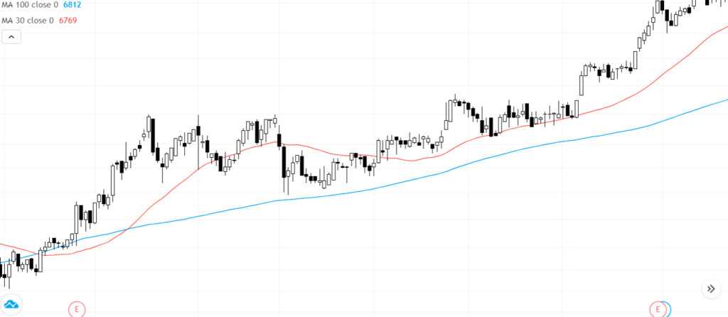 График показывает, что цена находится в долгосрочном восходящем тренде. В определенный момент времени восходящее движение немного приостановилось, но после этого цена снова пошла вверх.