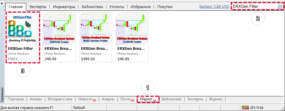 Скачать индикатор можно из магазина приложений для MetaTrader. Сделать это можно напрямую из терминала, для чего надо выполнить 3 простых шага: