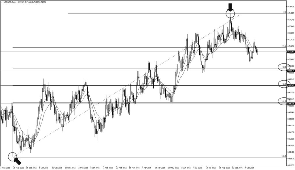 К примеру, вы наносите уровни коррекции Фибоначчи на дневной график NZDUSD во время восходящего тренда и обнаруживаете совпадение с ценой на нескольких уровнях. Помните, что мы не используем инструмент Фибоначчи для поиска ключевых уровней, а только для их дополнительного подтверждения.