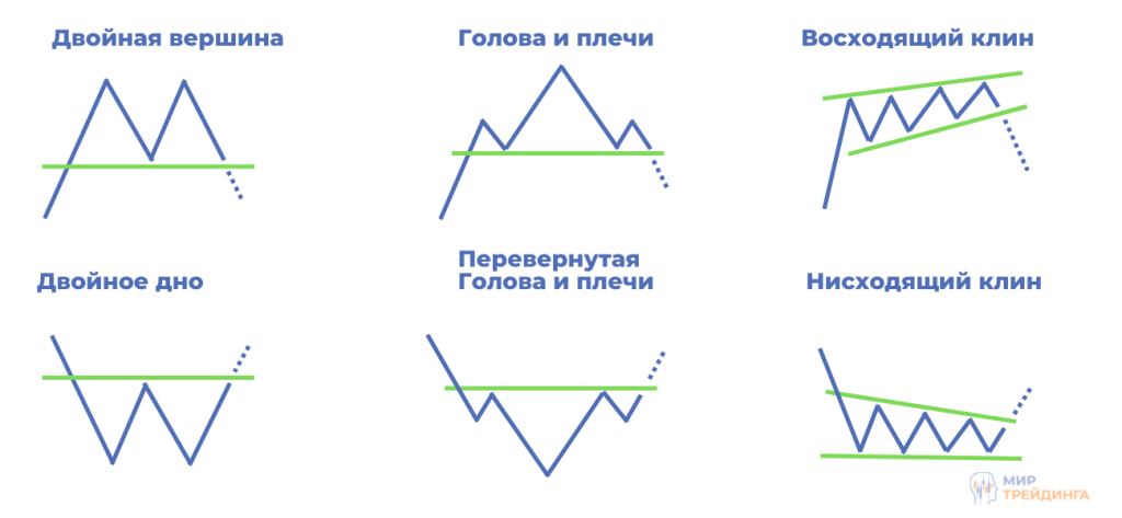 К разворотным фигурам технического анализа можно отнести следующие паттерны: