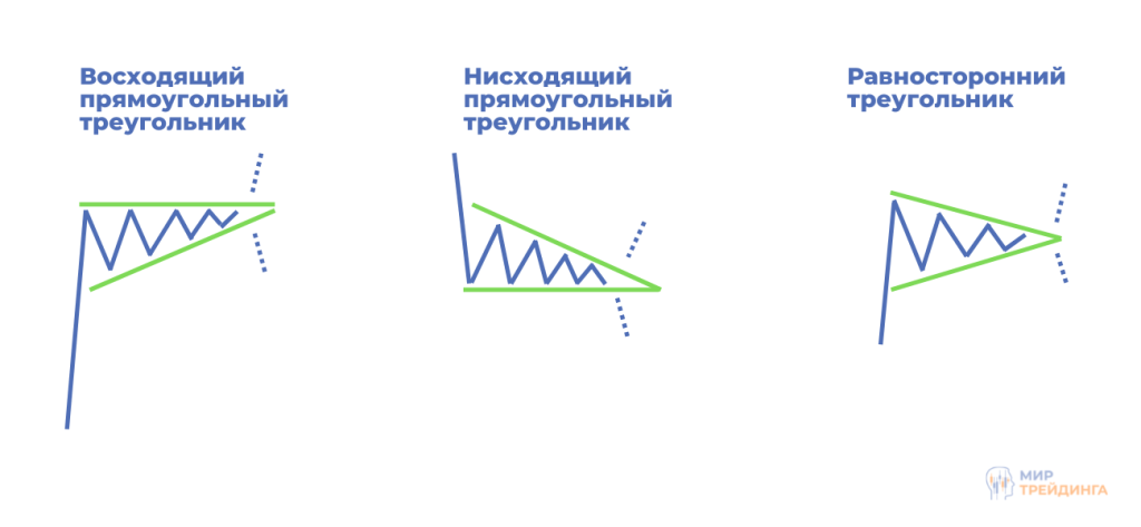 При открытии сделок по фигурам продолжения тренда мы рассчитываем, что цена продолжит двигаться в том же направлении, что и двигалась раньше.