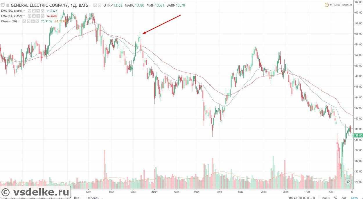 Фигура падающая звезда на графике General Electric (11 декабря 2000):