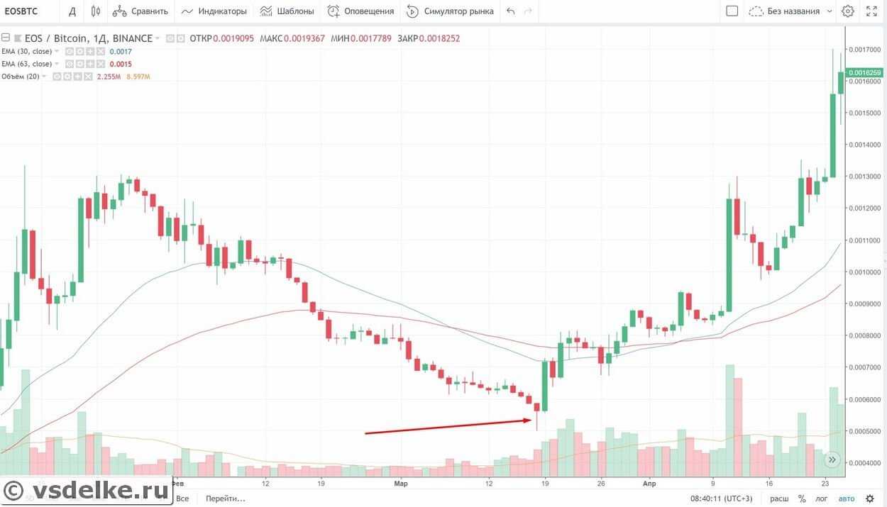 Фигура молот на графике EOSBTC (18 марта 2018):