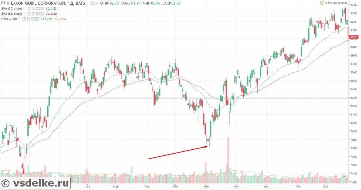 Фигура падающая звезда на графике Exxon Mobil (5 июня 2012):